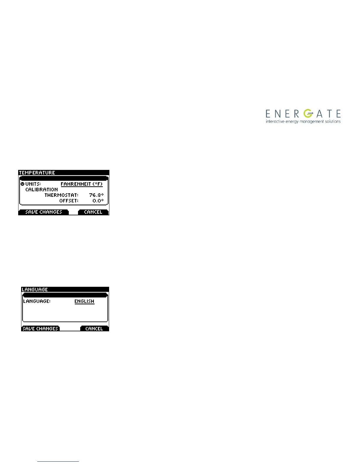 The thermostat can be set to English or Spanish through the LANGUAGE screen.