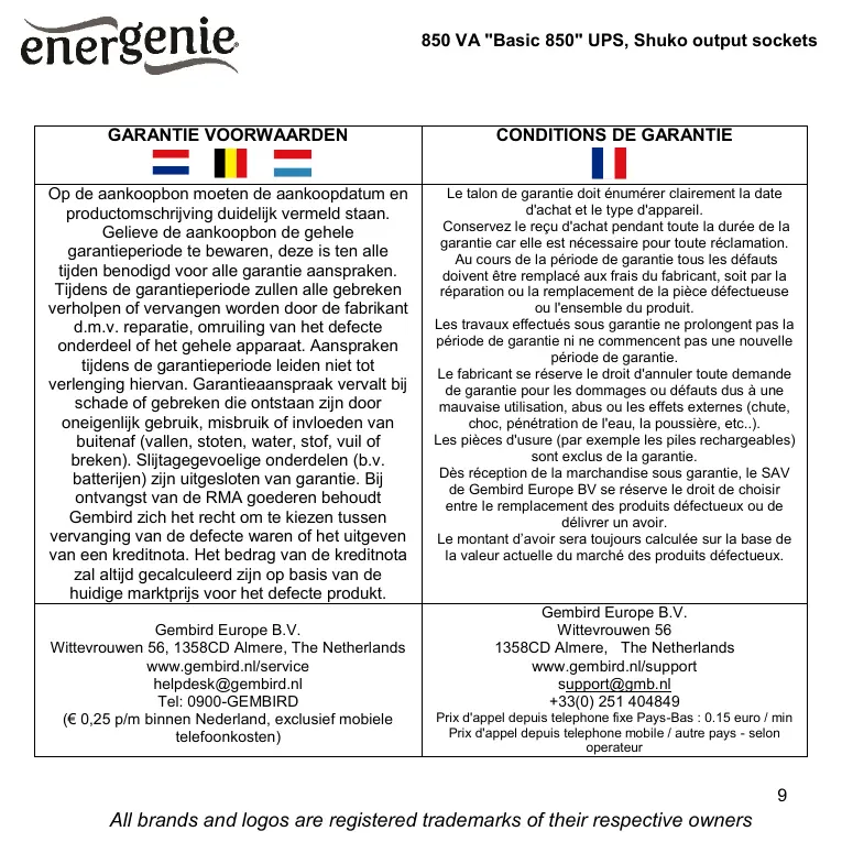 de Gembird Europe BV se réserve le droit de choisir