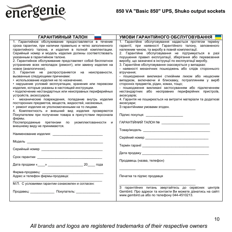 гарантії, при наявності Гарантійного талону, заповненого