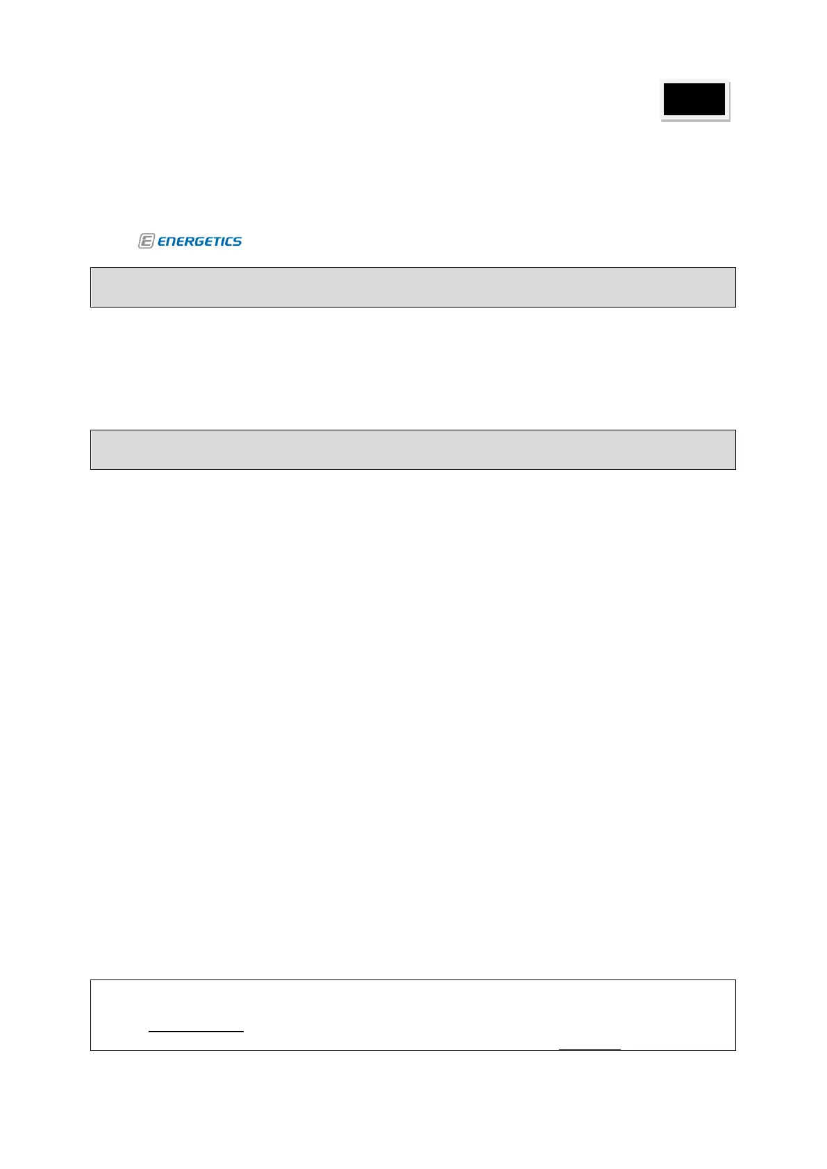 Only use original ENERGETICS parts as delivered (see checklist).