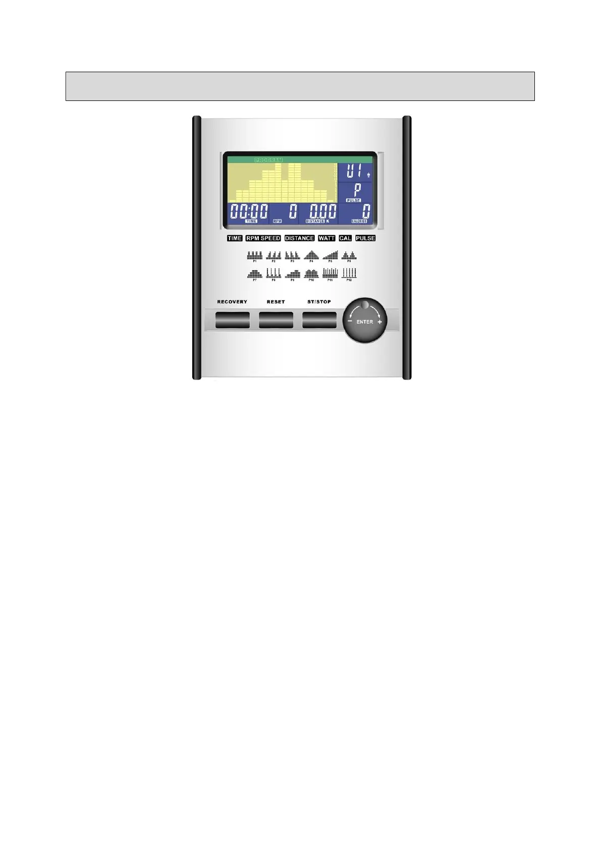 Přepíná mezi WATTS/CALORIES a RPM/SPEED. K přepínání