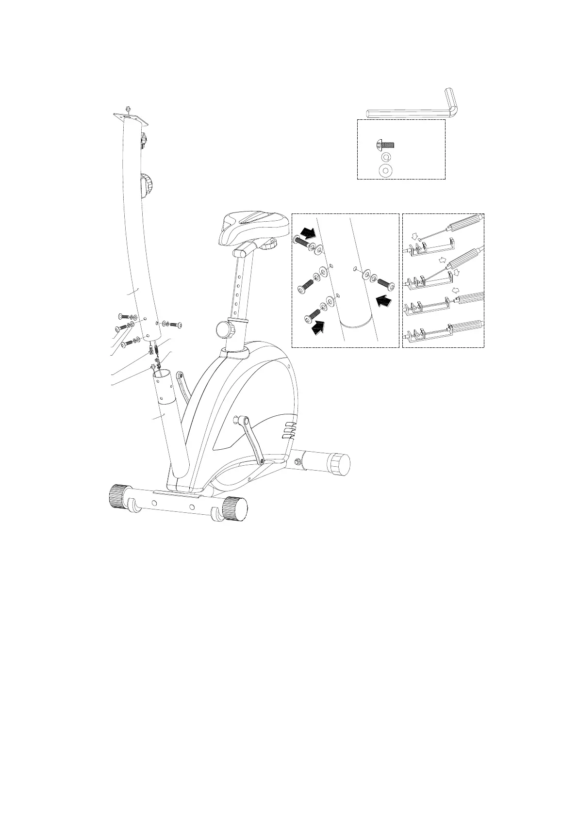 2. Assemble the handlebar post (5) to the main frame (1) by using the bolt (20), the spring