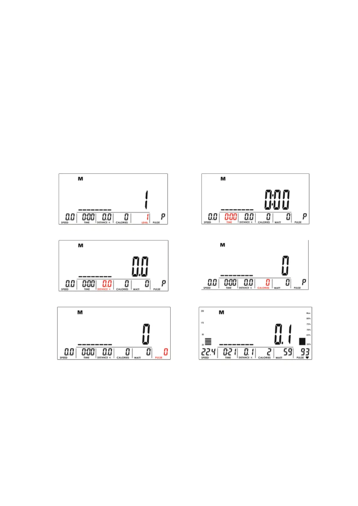 1. Use UP or DOWN (Encoder) to select workout program, choose M and press MODE / ENTER to get