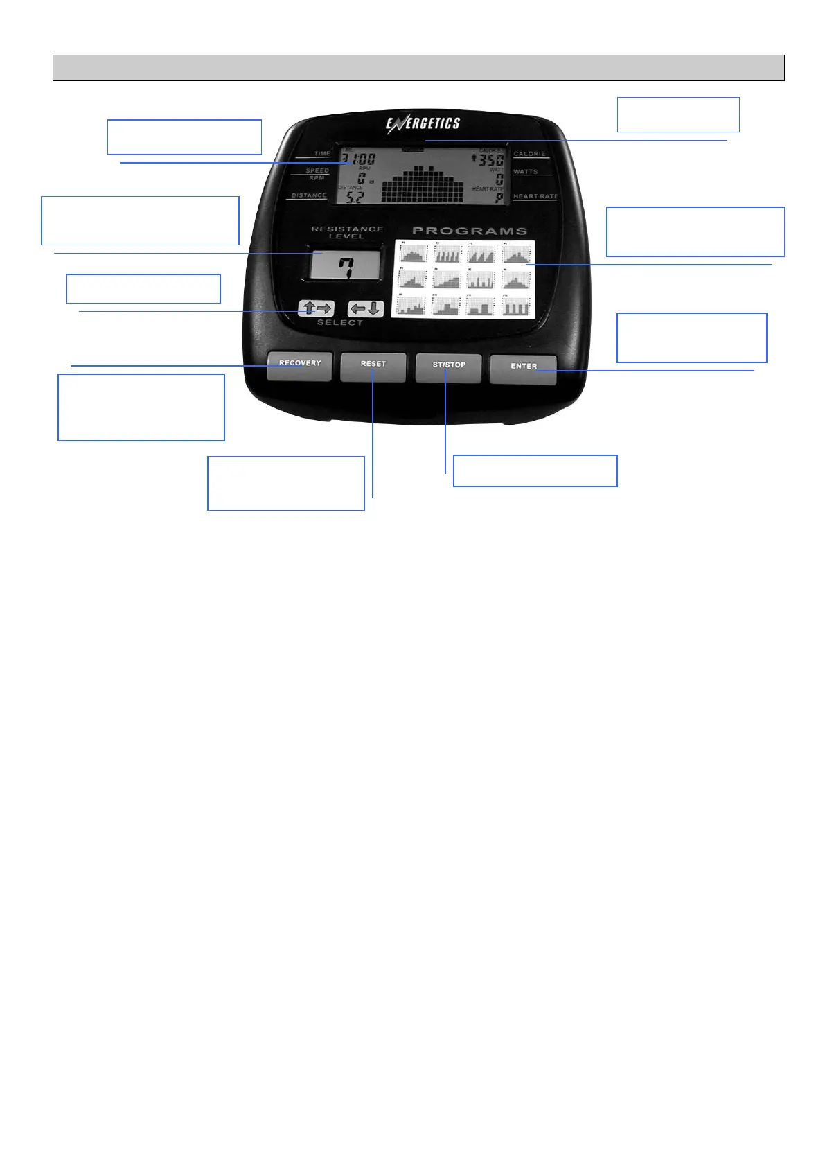 Recovery Key. Pressing this key at the end of your workout will activate the recovery function and test your fitness level.