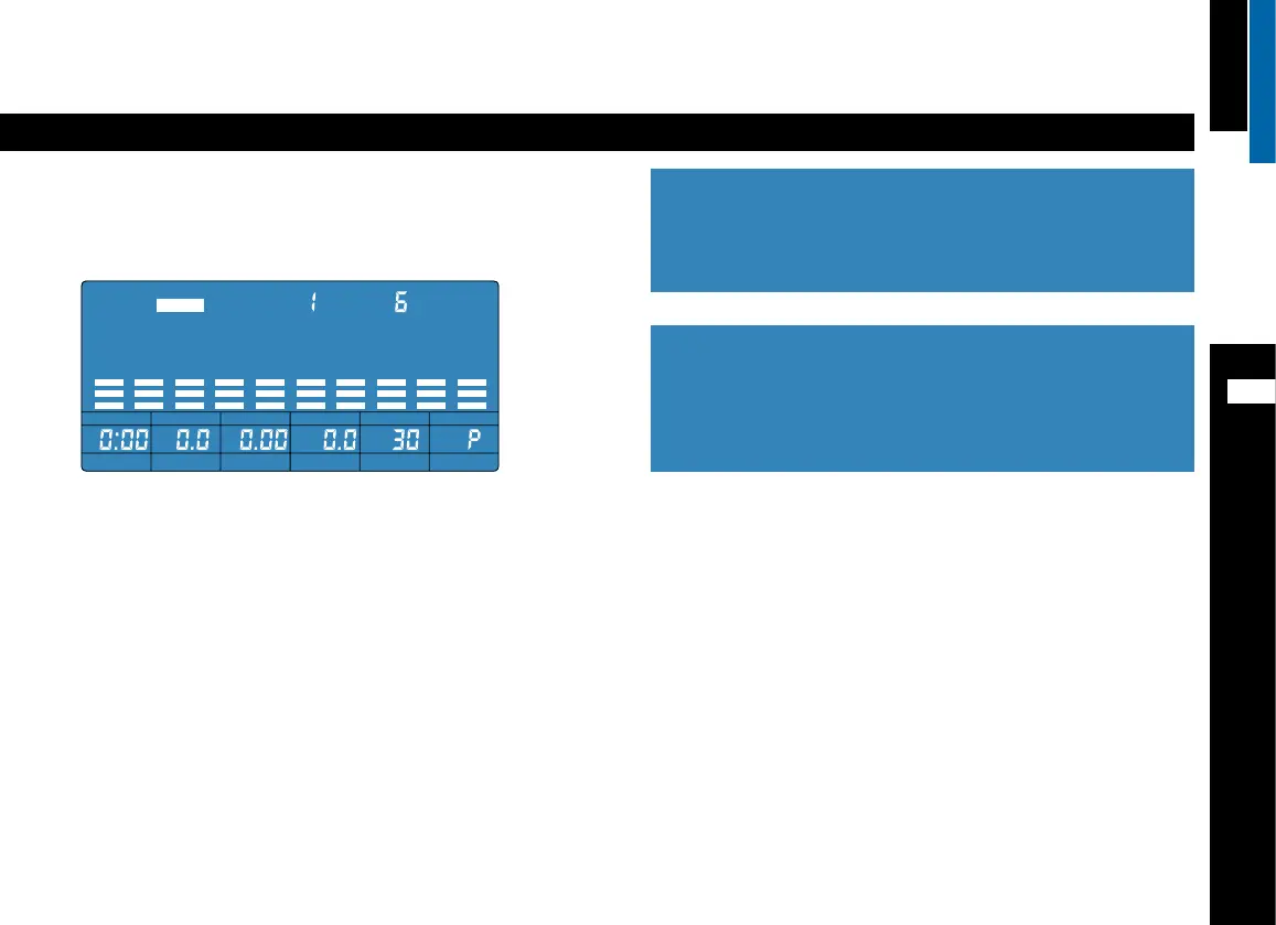 Begin met de training. Het scherm toont afwisselend snelheid (TIME), de
