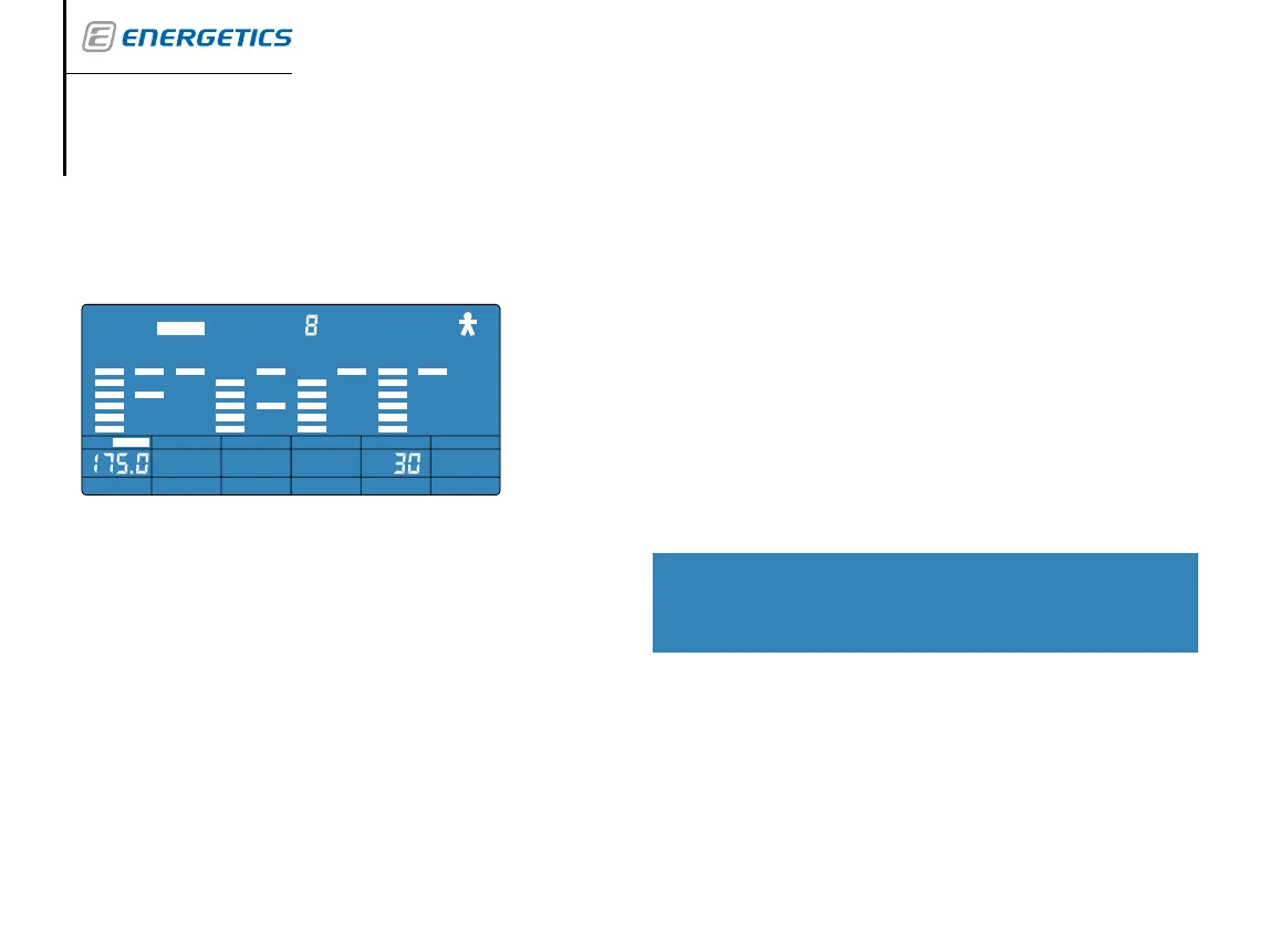 Vigtig: Straks efter tryk på knap ST/SP skal gribes håndpulssensorer. Hold på