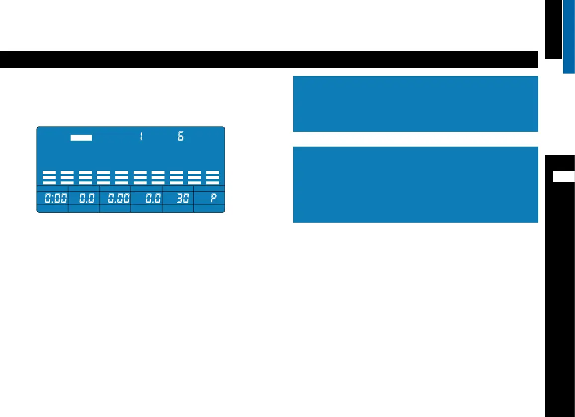 Beginnen Sie zu treten. Im Display sehen Sie die Trainingszeit (TIME), die