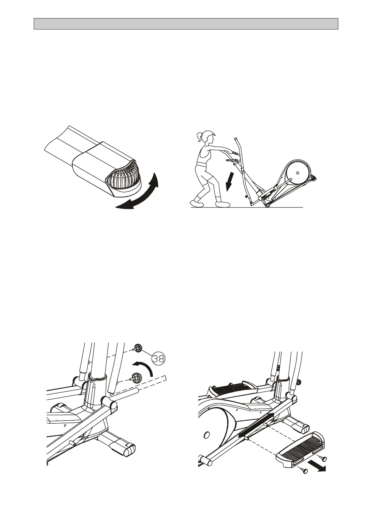 Lenker bis die Rollen den Boden berühren. Dann rollen Sie den Heimtrainer an die gewünschte Stelle