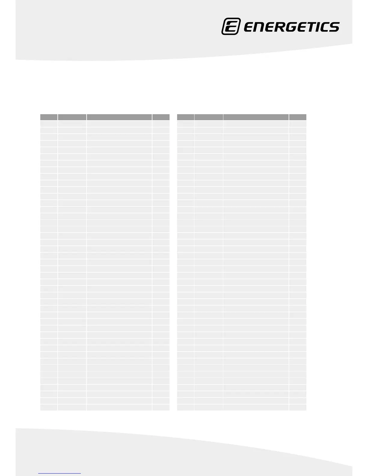 Energetics PR 5000hrc - Spare Parts List; Part Identification and Details