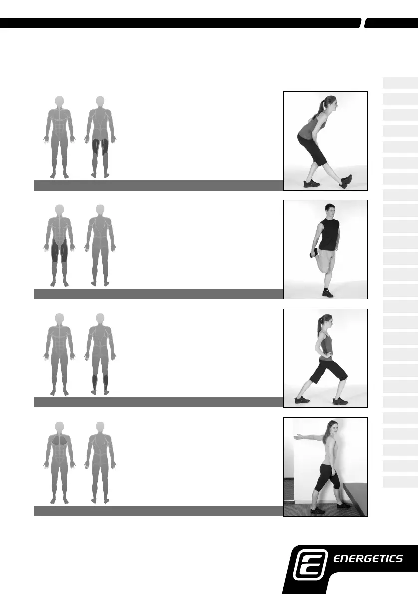 träningen. Håll varje position i ca 10 - 20 sekunder. Du skall känna ett lätt drag i musklerna men ingen