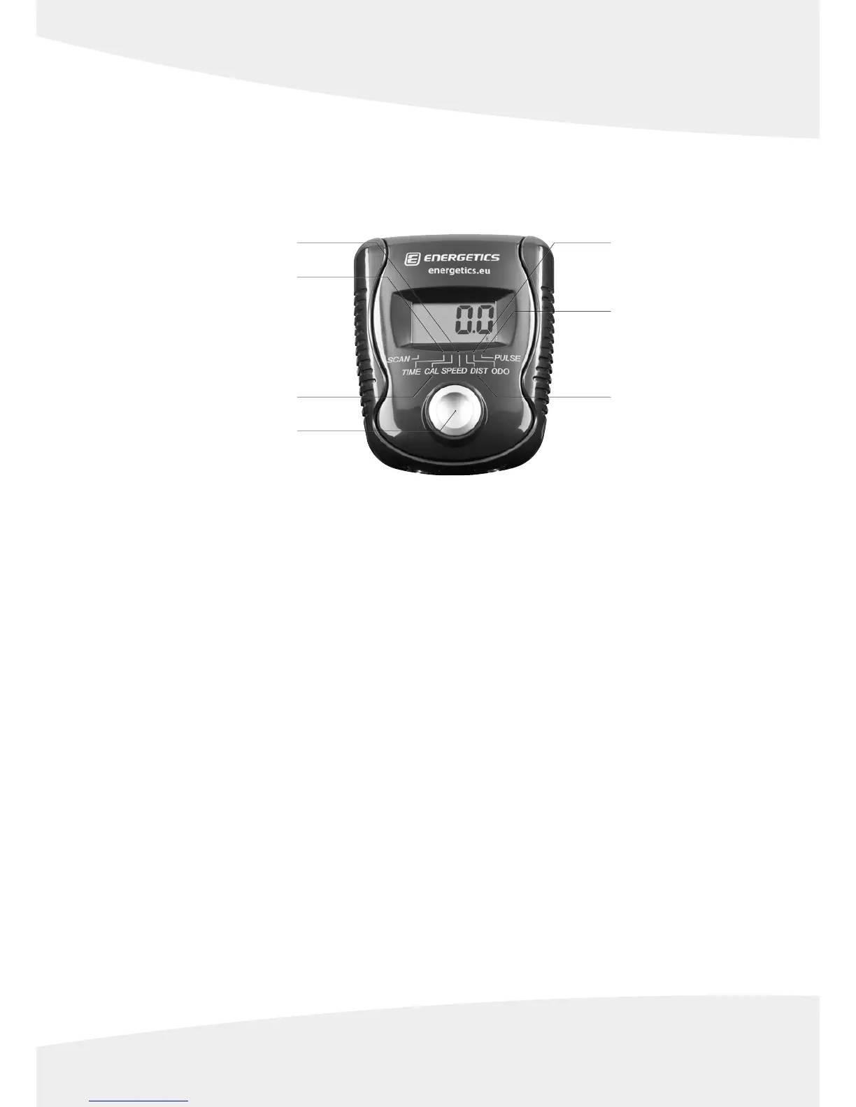 1. Durch Drücken der Taste laufen die Trainingswerte (Zeit, Kalorien, Gesamtstrecke, Puls, Geschwindigkeit und