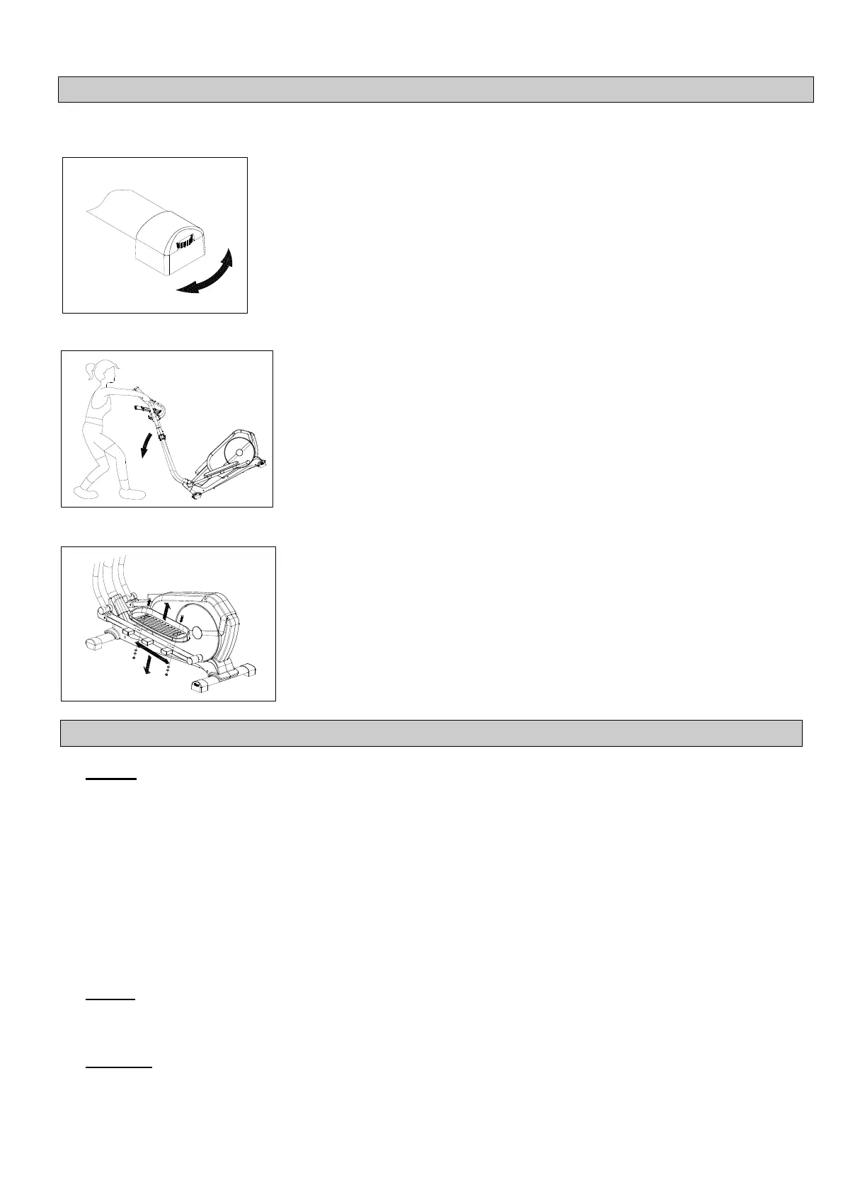 Lenker an, bis die Rollen den Boden berühren. Dann rollen Sie das Fitnessgerät an die gewünschte Stelle.