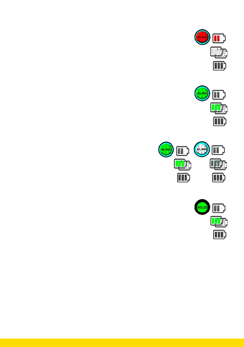 During the first phase of charging, the RGB LED flashes RED and the Alarm/Warning