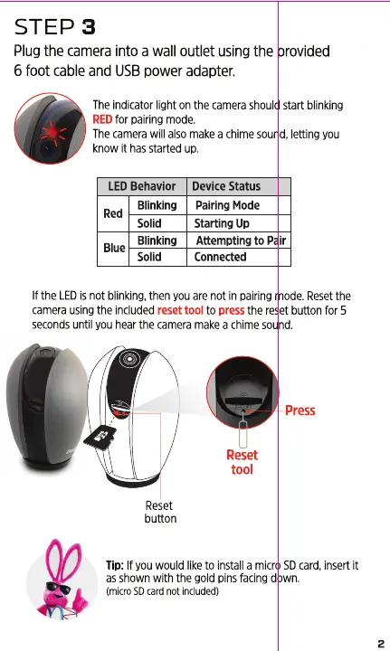 Plug the camera into a wall outlet using the provided