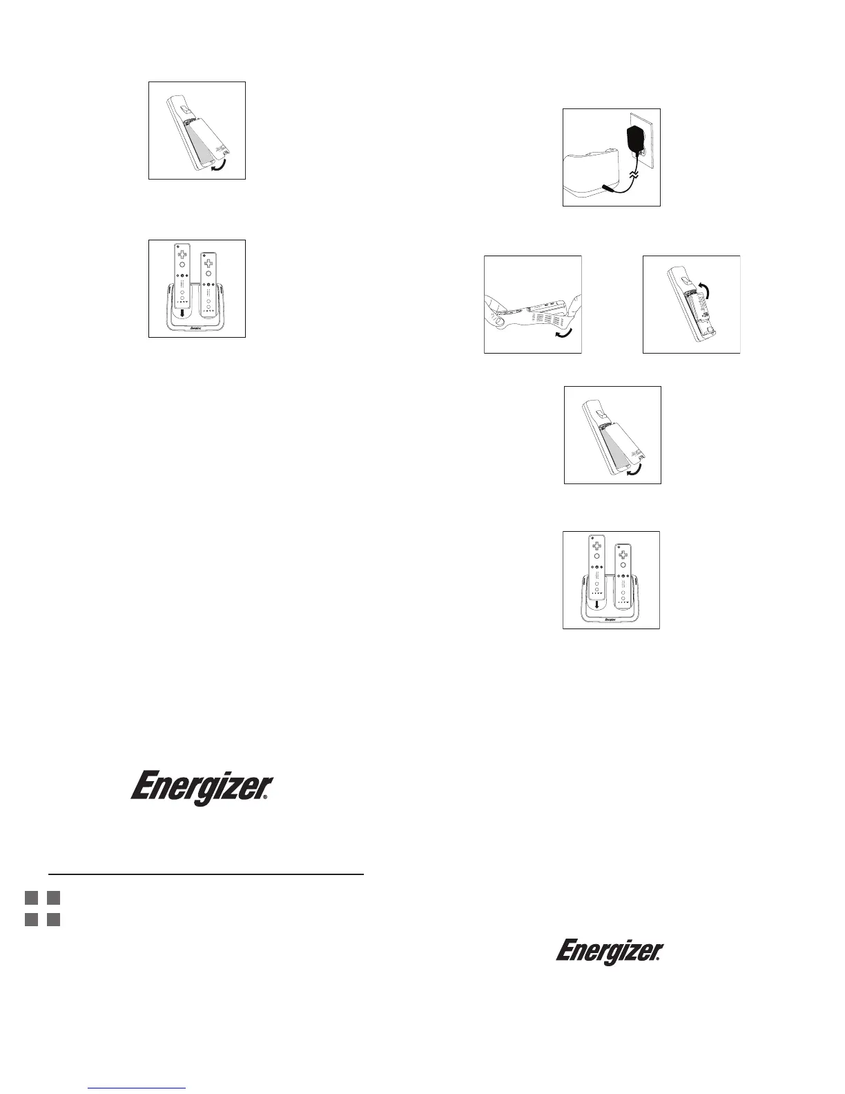 ADVARSEL: Oplad kun Energizer NiMH-batteripakker i dette opladningssystem til Wii Remote.