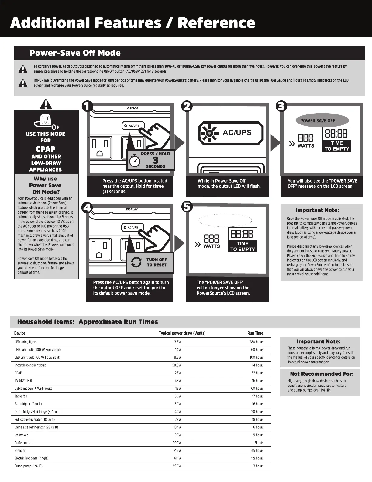 Energizer PowerSource Pro - Power-Save Off Mode; Household Items: Approximate Run Times