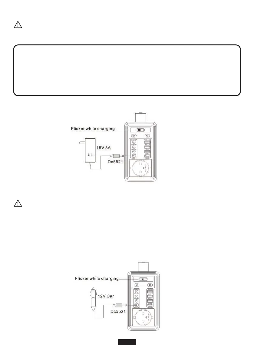 Stecken Sie den Originaladapter in den Wechselstromeingang des Geräts und die Akkuanzeigen blinken.