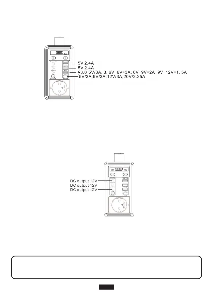 B. Die anderen beiden USB-Anschlüsse bieten einen Ausgangsstrom von maximal 2,4A. Sie bieten