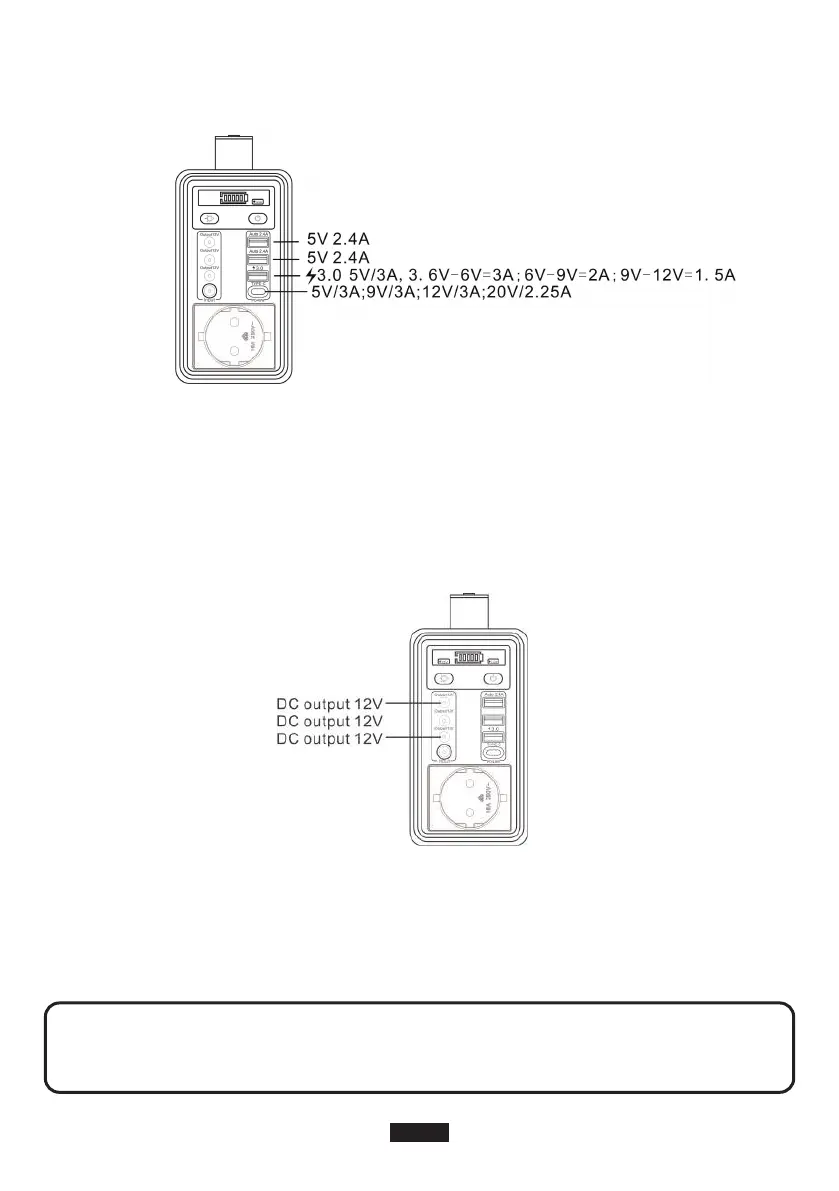 A. Un port USB en haut supporte QC3,0, 5V/3A, 3,6V - 6V = 3A ; 6V-9V = 2A ; 9V-12V = 1,5A.