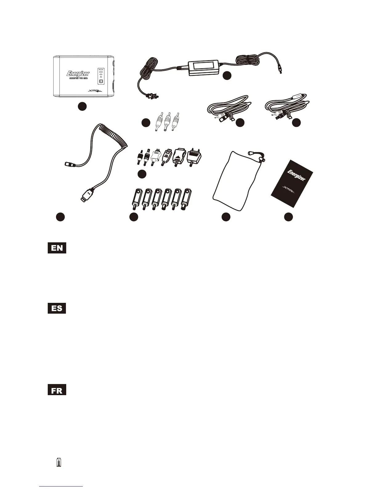 1. XP8000 2. USB Charging Cable 3. AC Adapter 4. Cell Tips