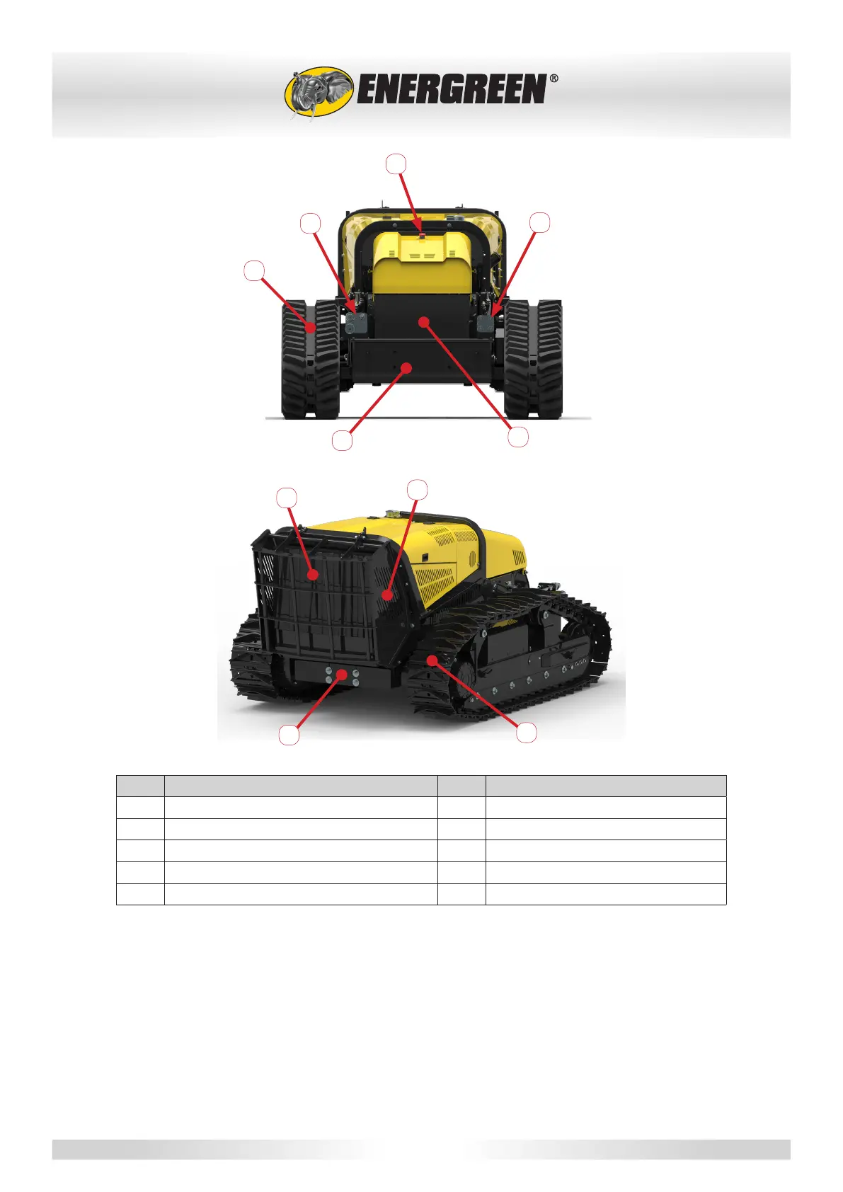 13 Rubber tracks 18 Radiator casing