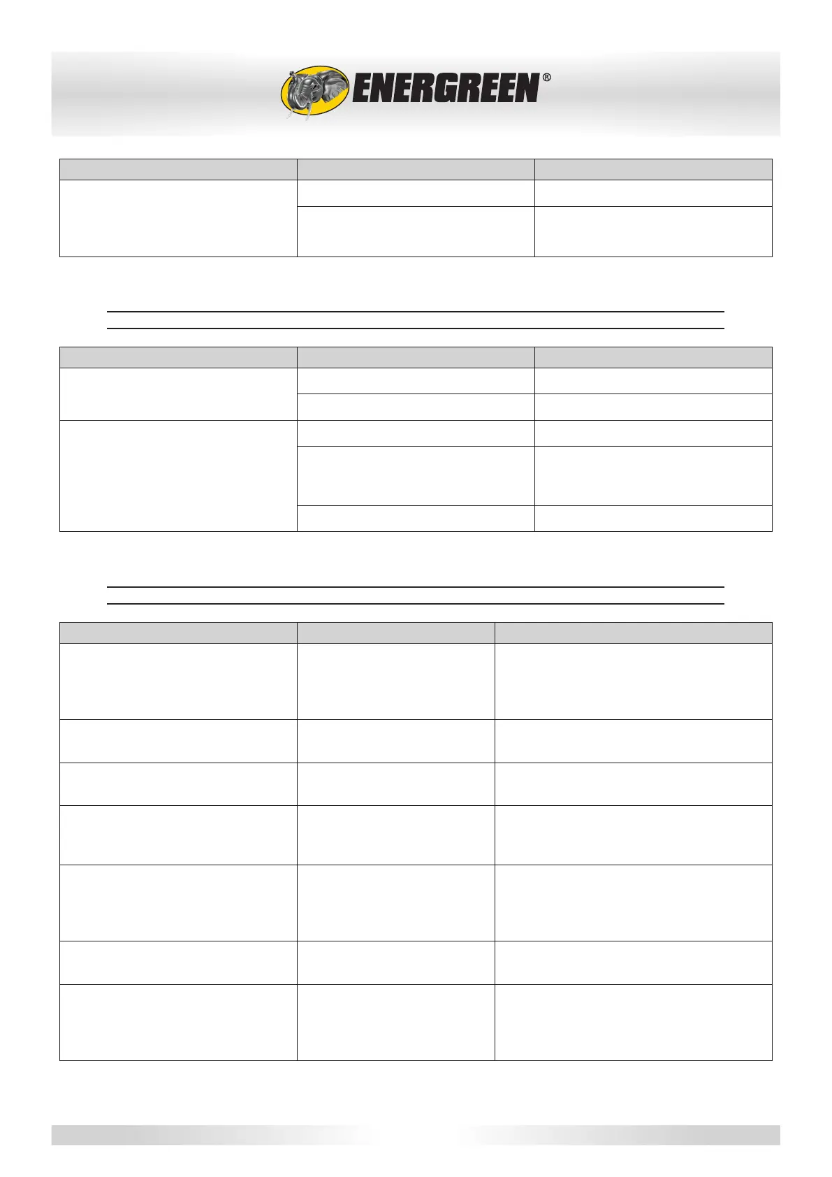 (*) If the fault or the reason for it is not indicated in the list of faults shown in tables below, contact ENERGREEN in order for repairs to be carried out.