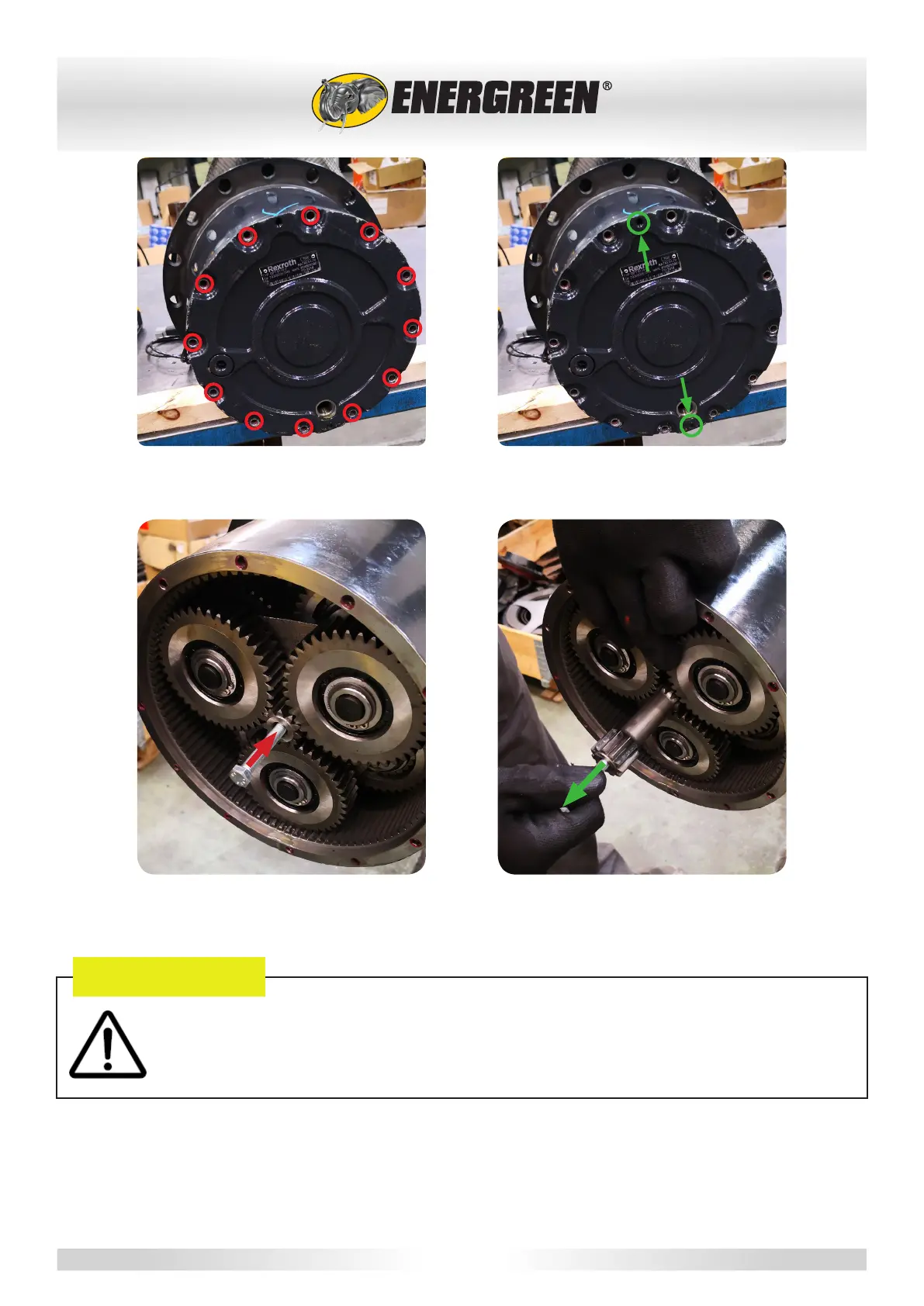 • Tighten the M8 screw of the central gear pin and use it as a puller to remove the “solar pin”.
