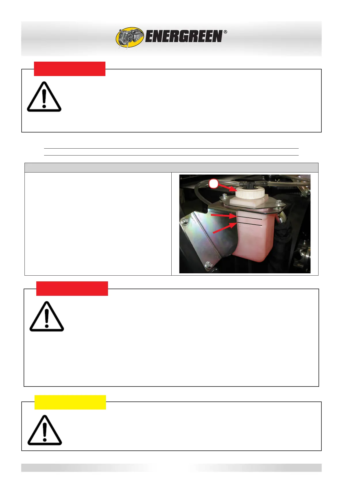 • The coolant contains antifreeze and it is inammable. Do not use naked ames