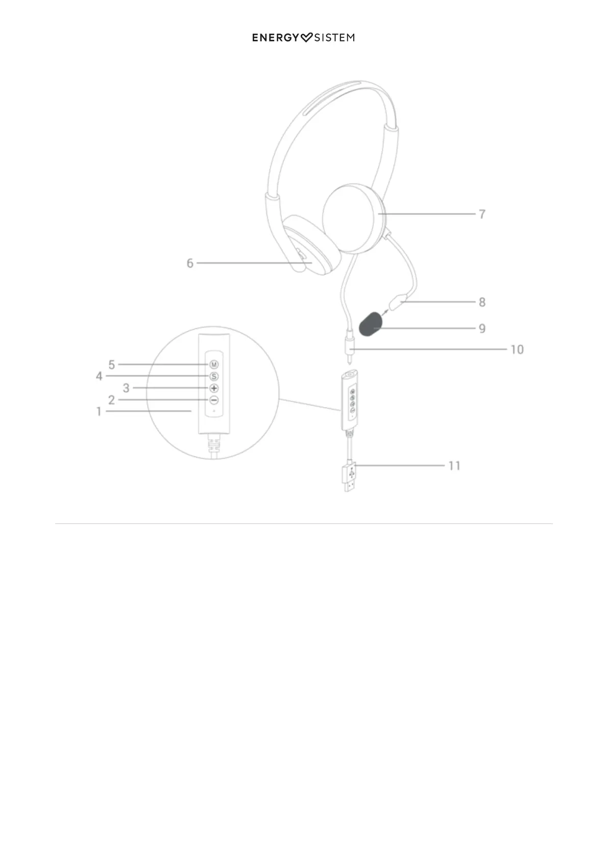 Microphone (8) indicating the side that should rest close to the mouth to ensure accurate voice capture.