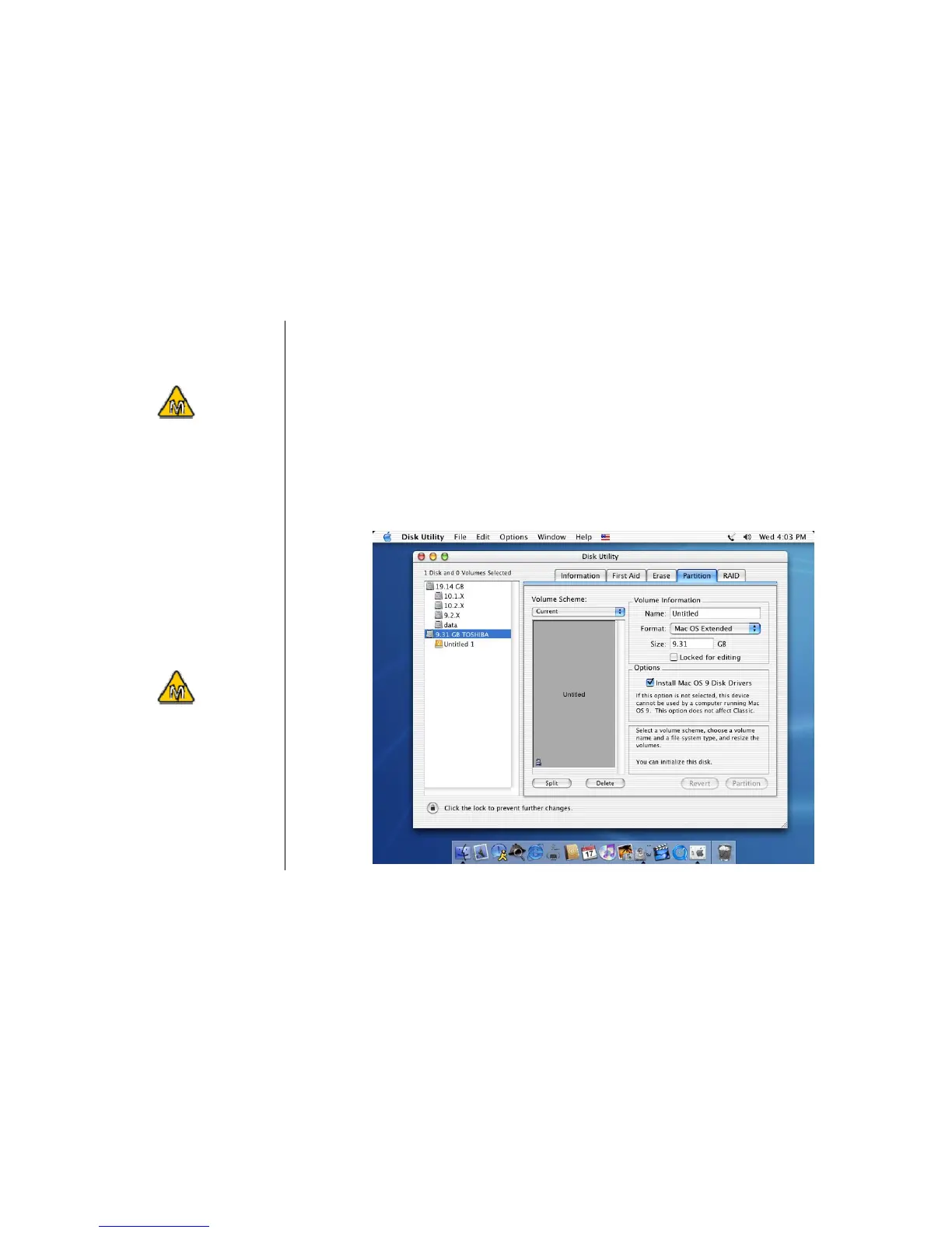 For Mac OS X, use the Disk Utility to format and create partitions on your external disk.