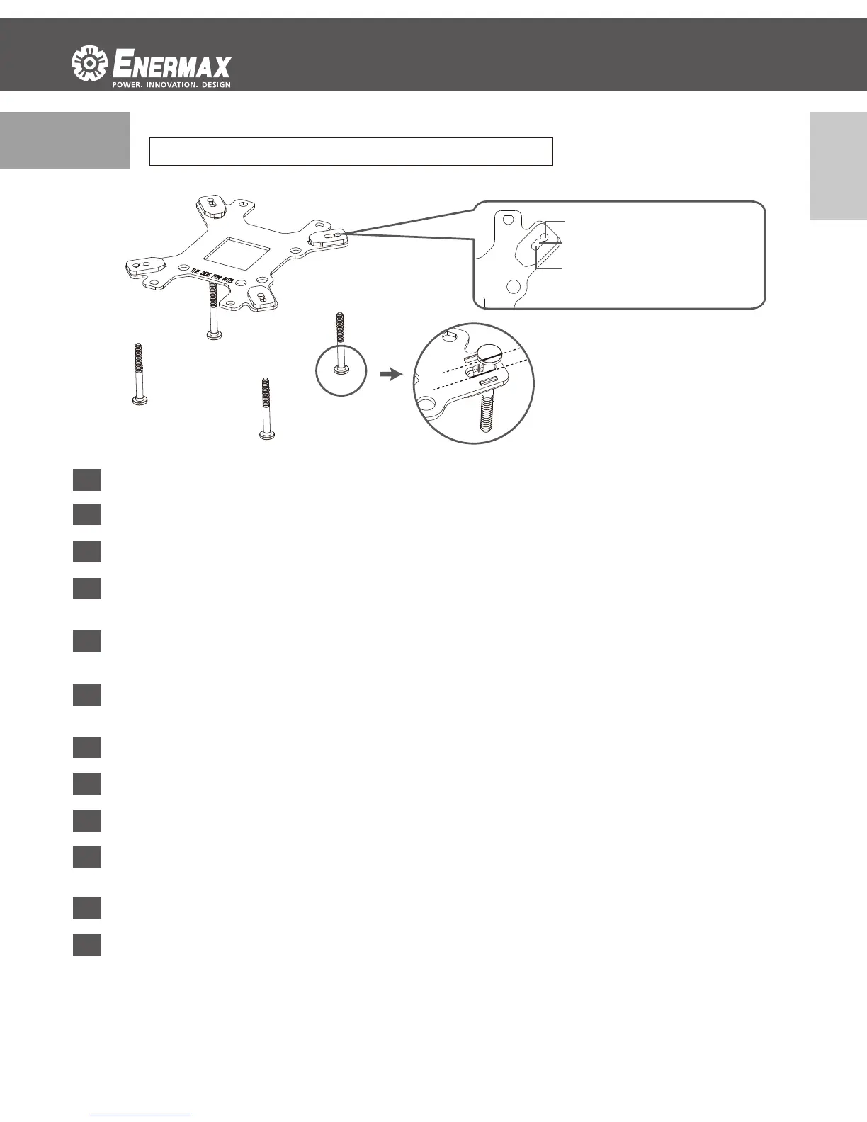 依系統CPU腳位將定位螺絲固定於背板相對應孔位