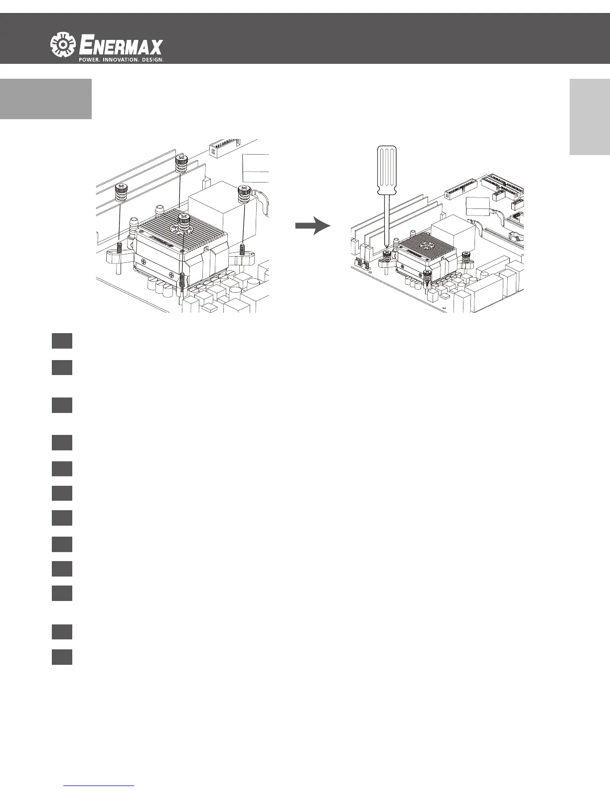 Place the pump on the CPU and ghten the spring screws unl all four corners are secured