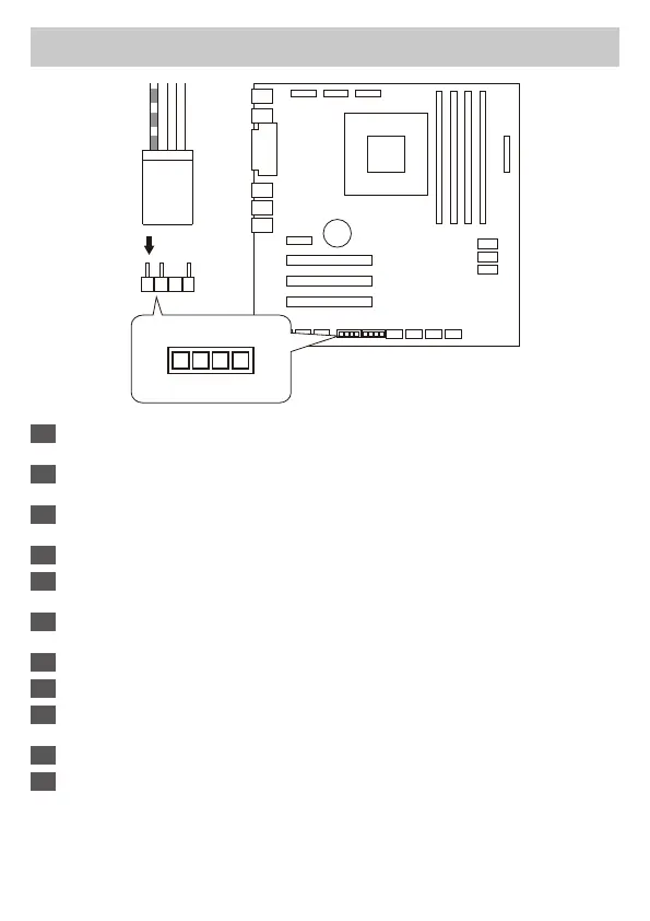 헤더를) 지원하는 경우: RGB 동조 케이블을 마더보드에 연결하십시오.