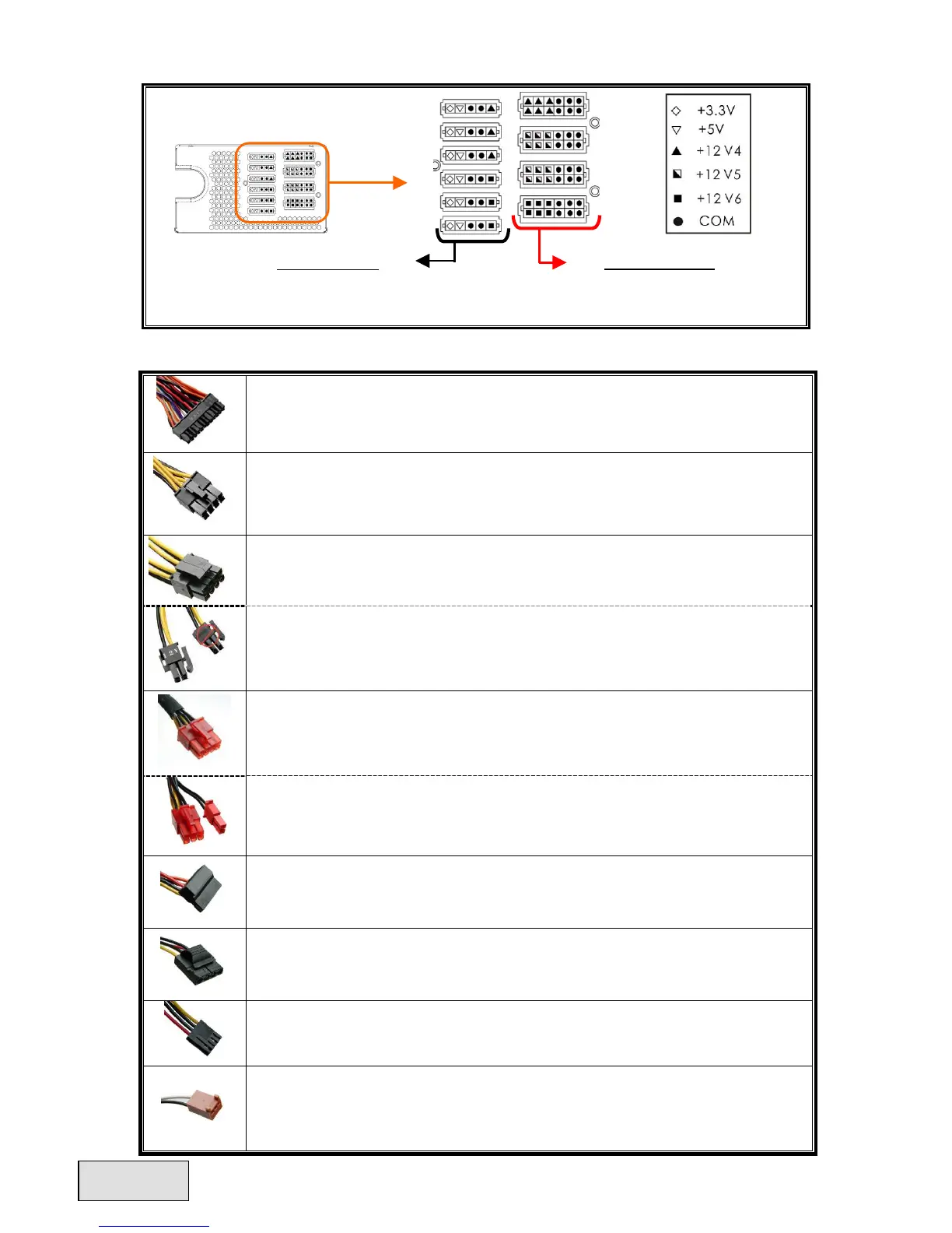供應 IDE/SCSI/SAS 等介面周邊及部分 AGP 顯示卡之電力。