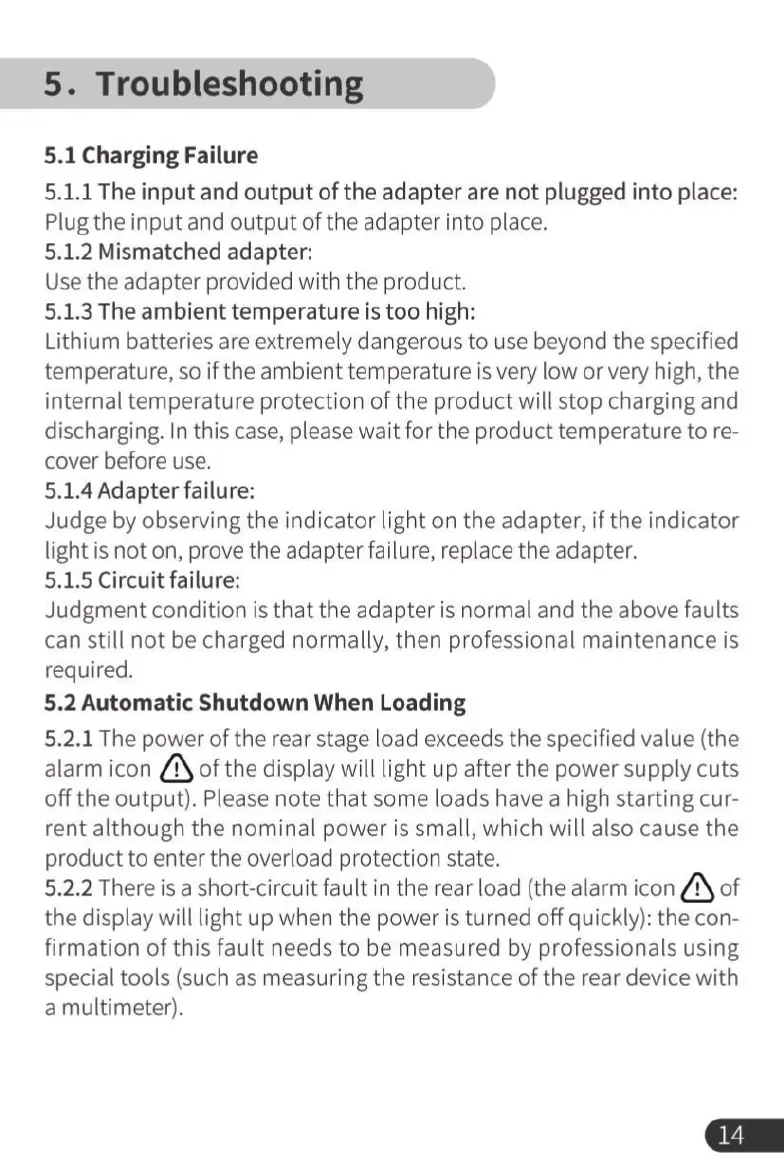 Enernova ETA - Troubleshooting; Charging and Shutdown Problems