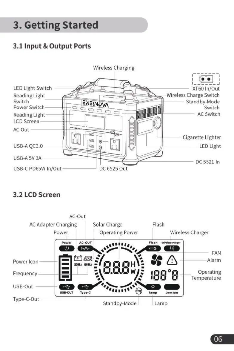 Enernova ETA - Getting Started; Input and Output Ports; LCD Screen Overview