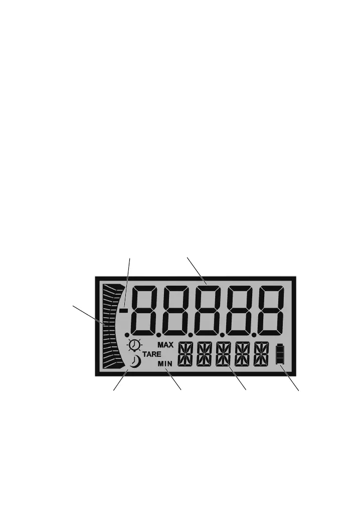 ④ Symbole für maximalen / minimalen Druck und Tara.