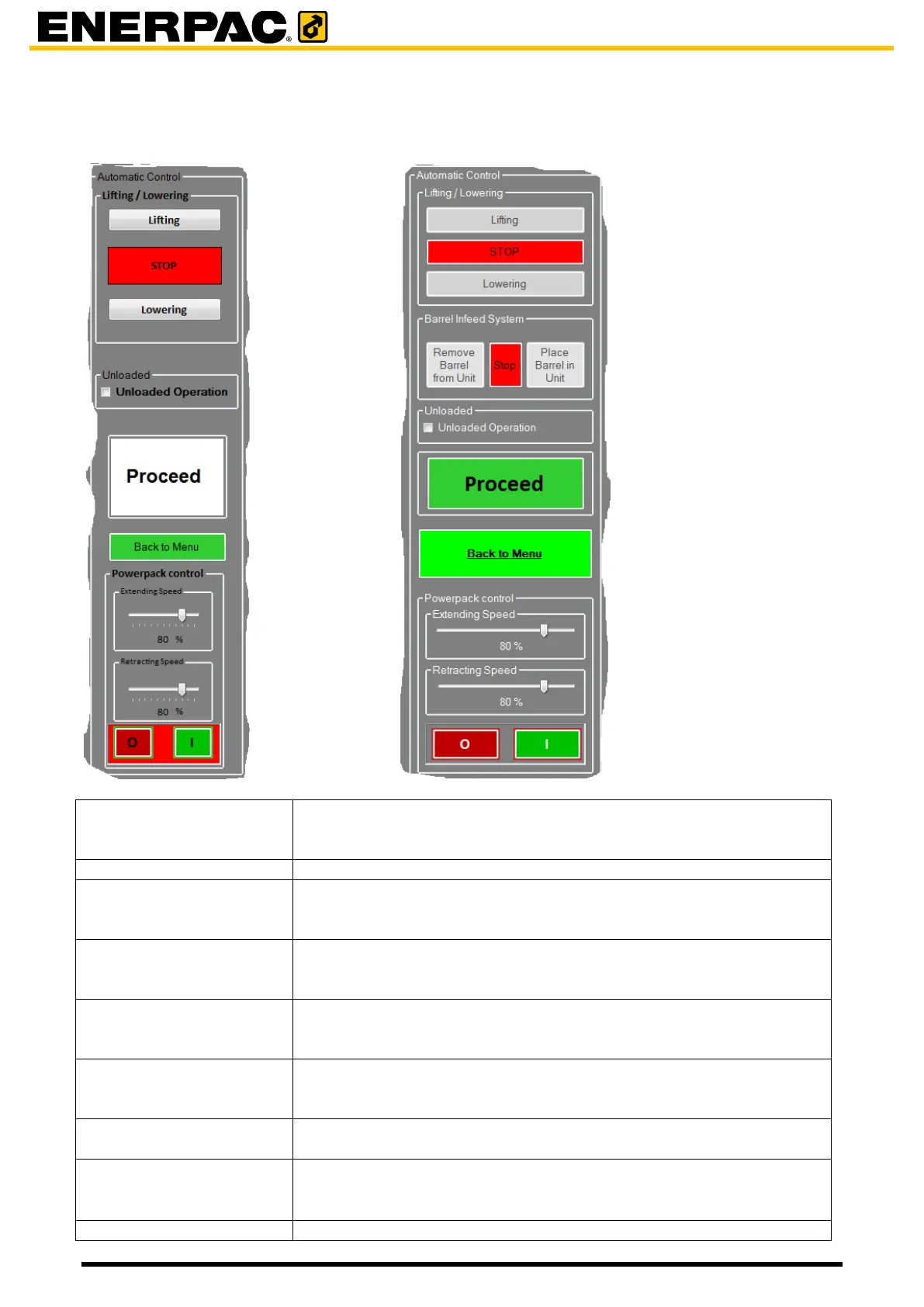 - When lowering a load, click after a barrel was removed