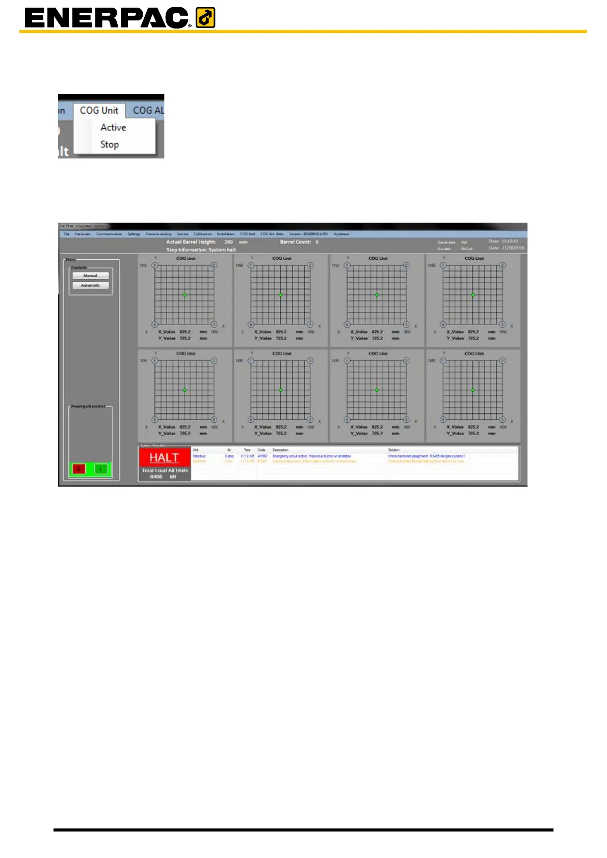 To show the COG of the Unit, click COG Unit in the Menu bar, then click Active.
