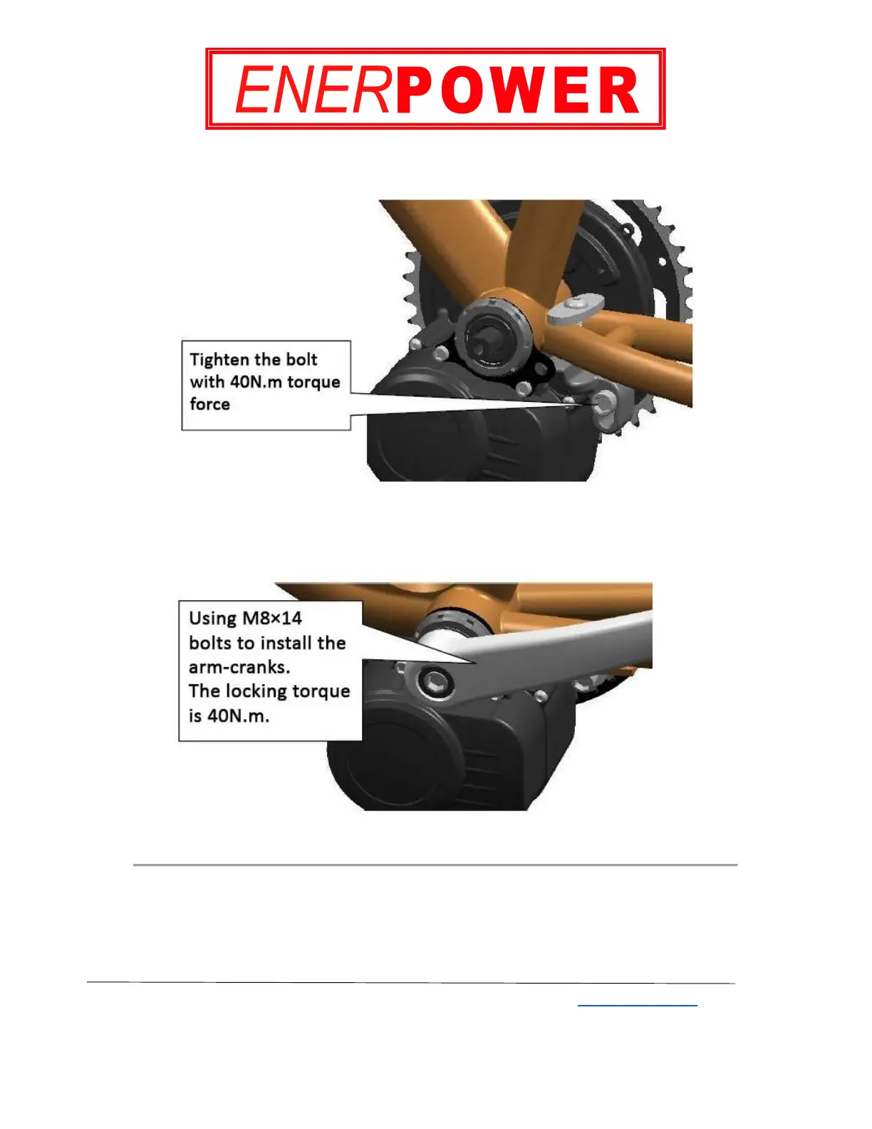 Using M8×14 bolts to install the arm-cranks. The locking torque is 40N.m.