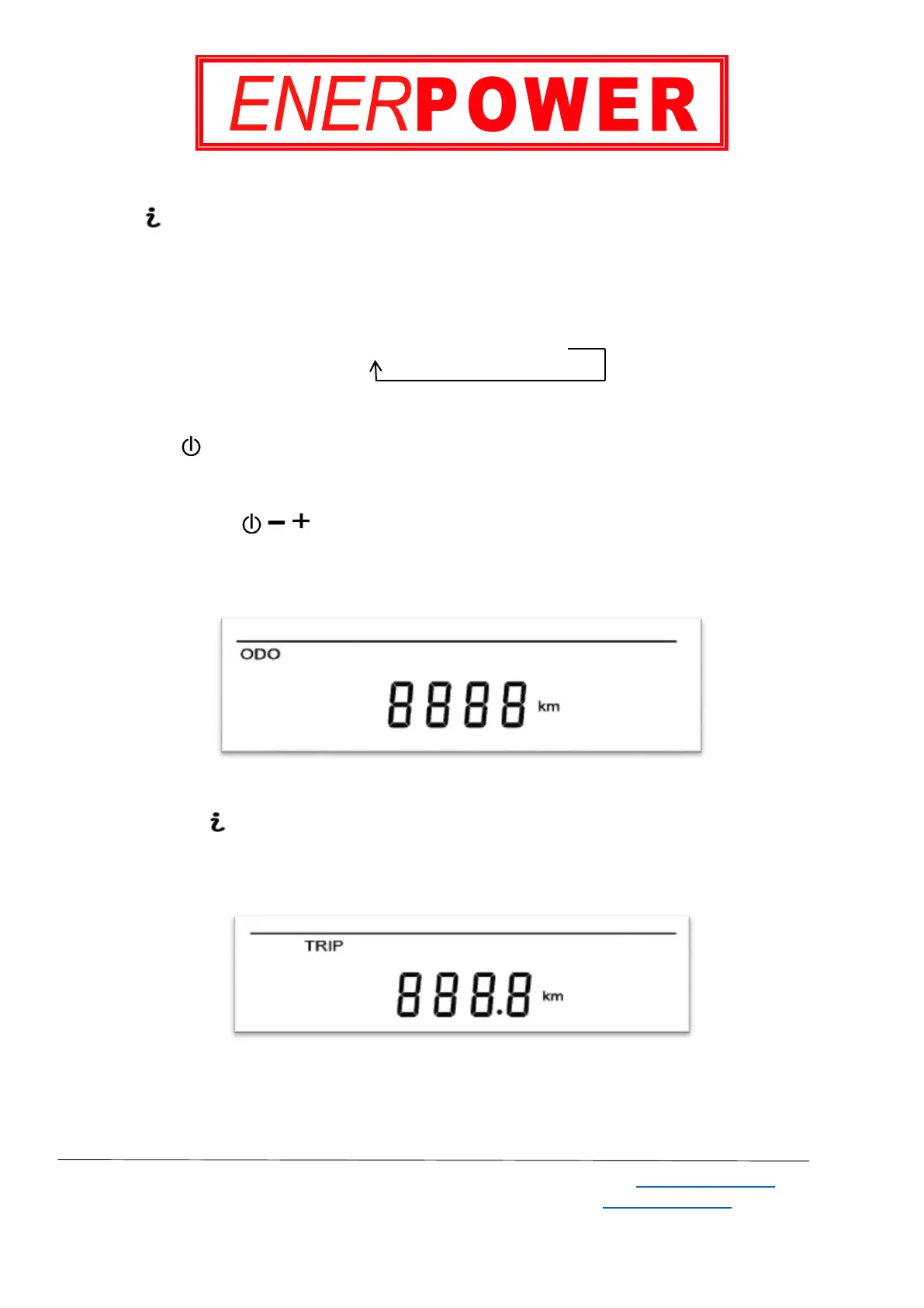 When odometer (ODO) is shown, press and hold the Power, + and - buttons simultaneously for 10