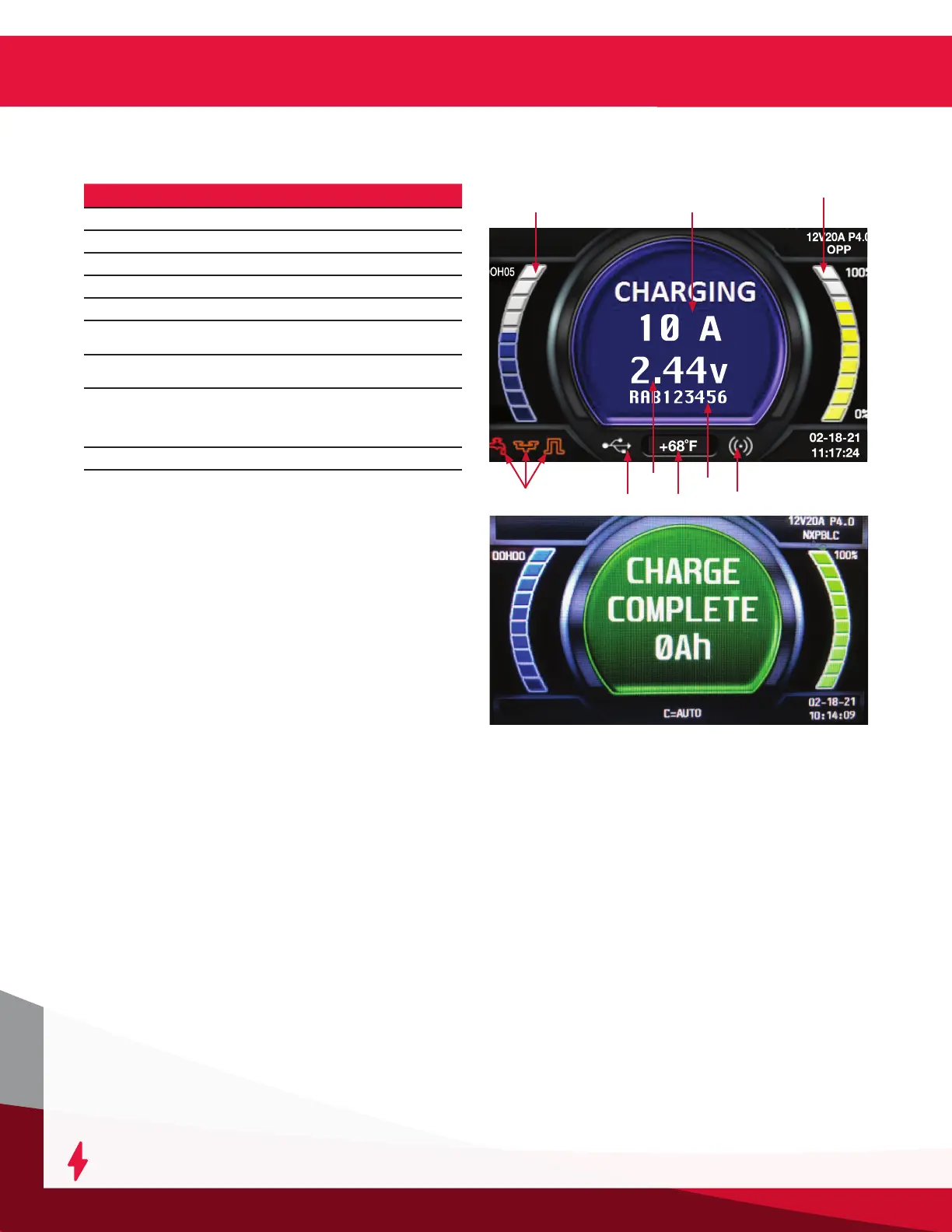 display will output various charge parameters,