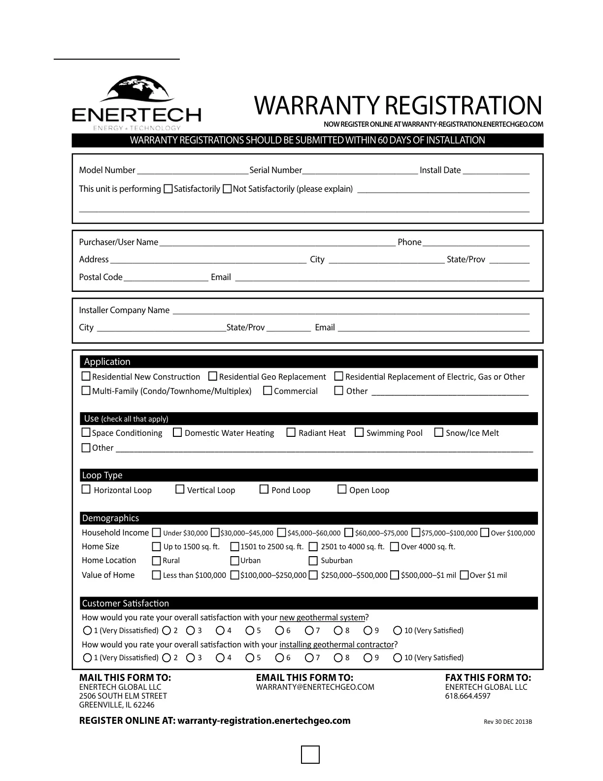 REGISTER ONLINE AT: warranty-registration.enertechgeo.com