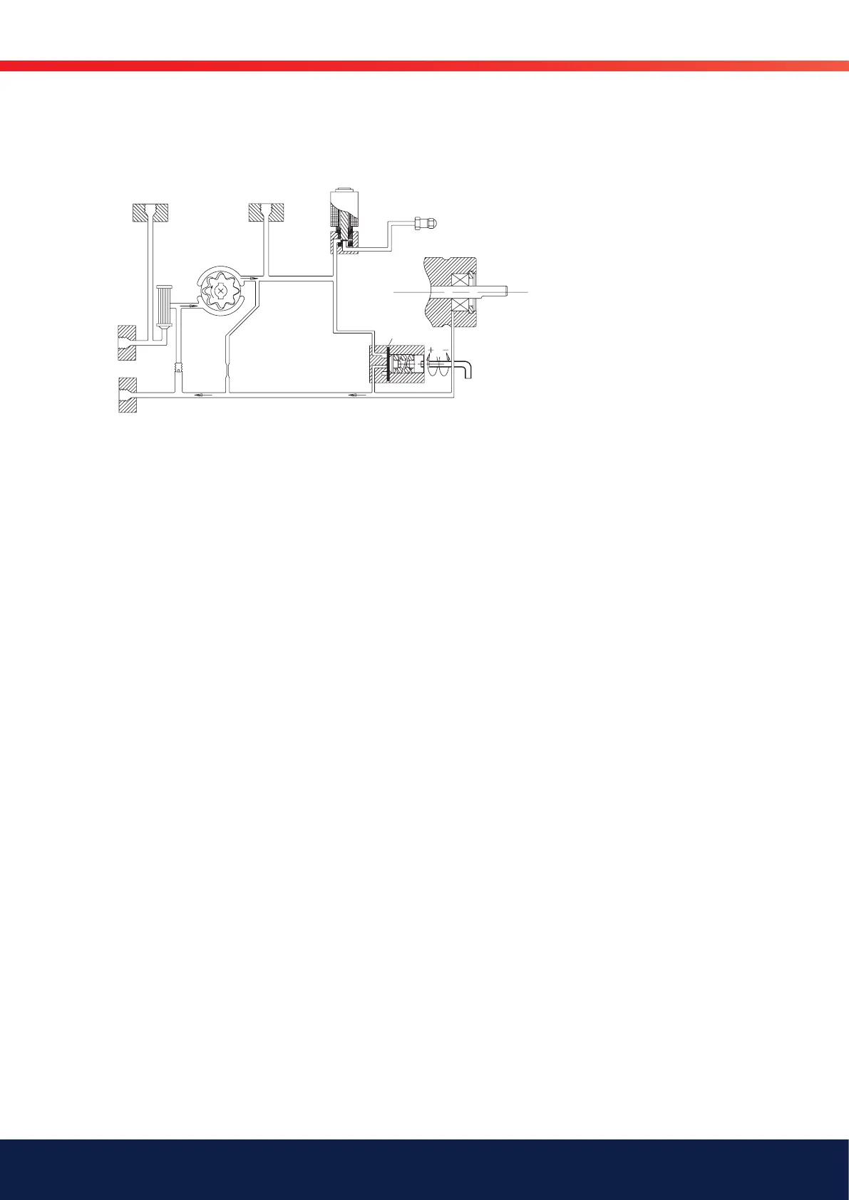 When the pump is started, oil is drawn from the suction port (S) through the