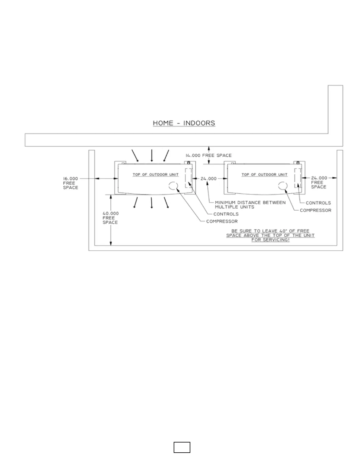 least 14 inches. Clearance above the unit should be at least