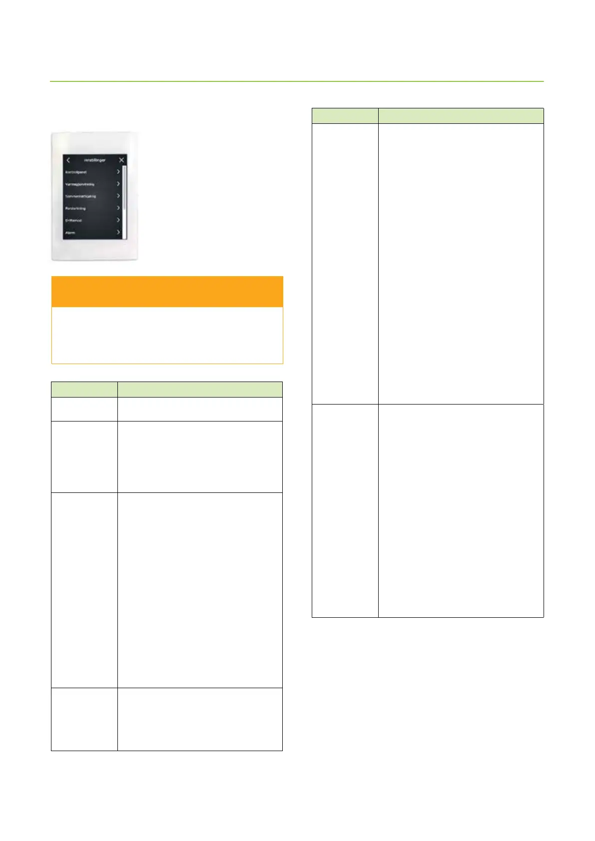 innstillingene for varmegjenvinningens