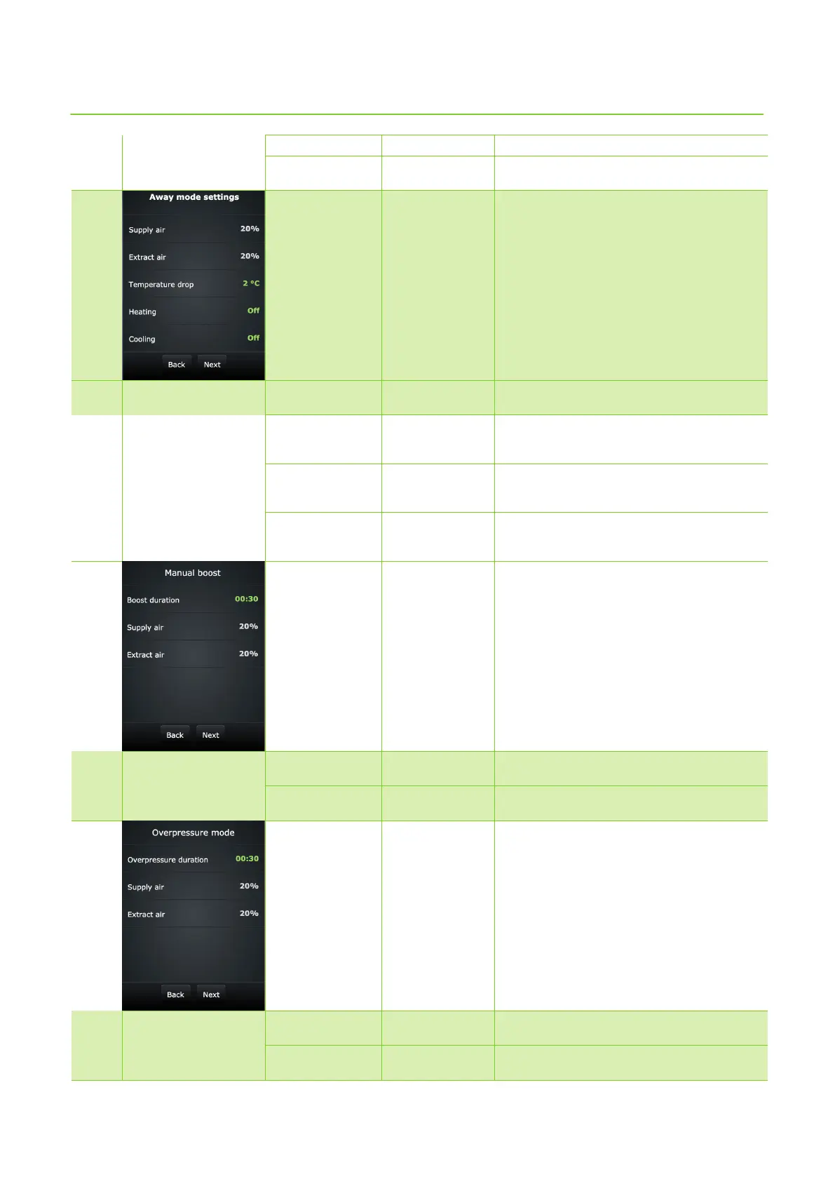 11 Supply air 20 % This value denes the supply air fan speed in Away