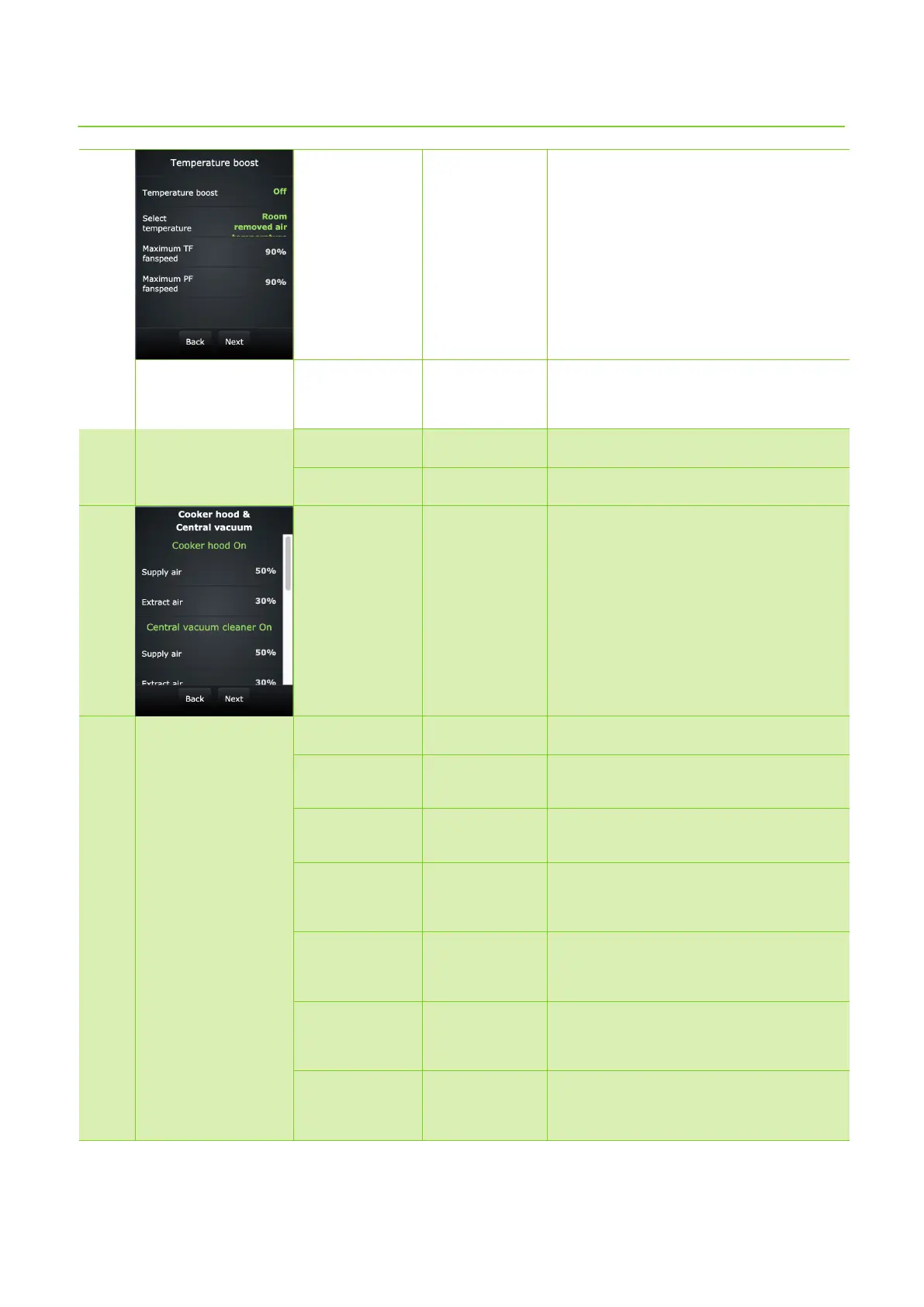 30 % Set the extract air fan speed for when the cooker