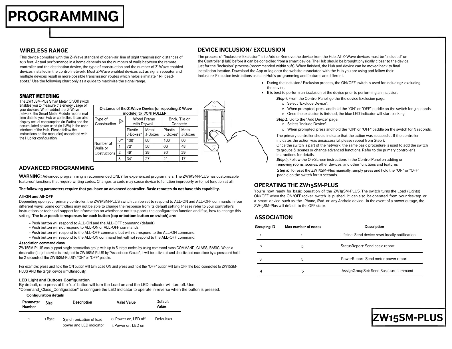WARNING: Advanced programming is recommended ONLY for experienced programmers. The ZW15SM-PLUS has customizable