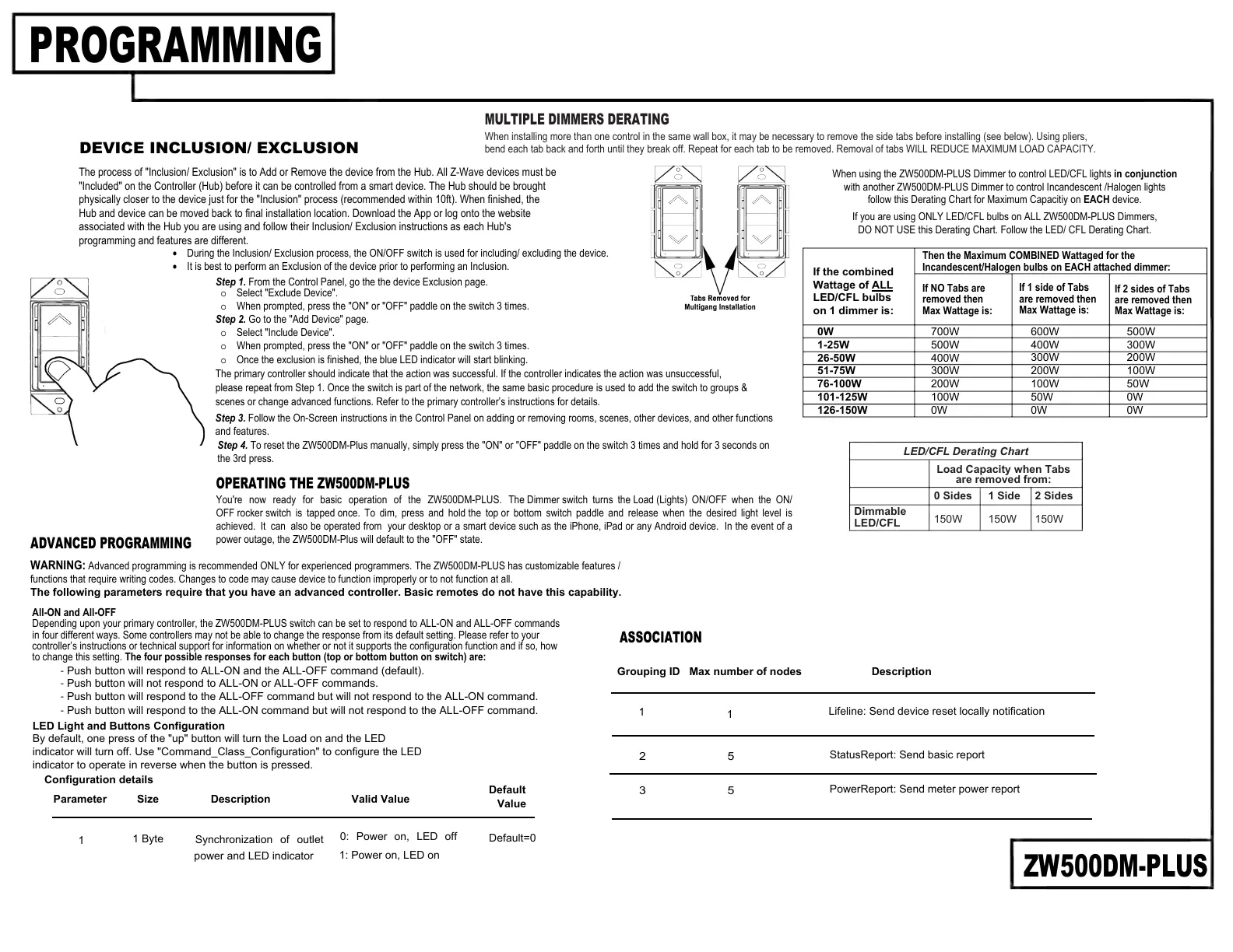 When using the ZW500DM-PLUS Dimmer to control LED/CFL lights in conjunction